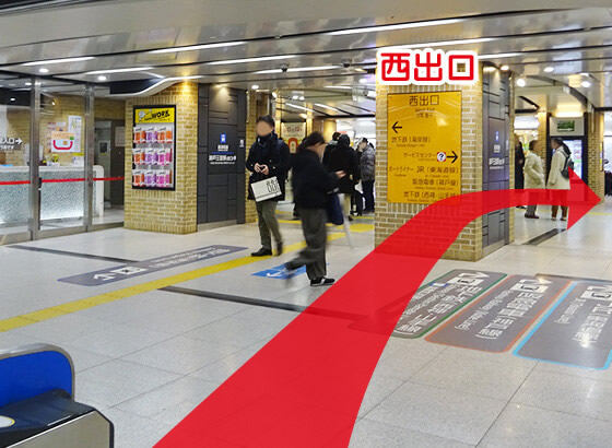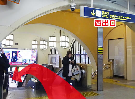 阪急三宮駅の西口を出て、エスカレーターを降ります。
