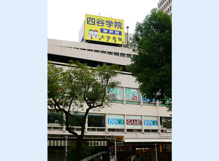 四谷学院神戸校は三宮の街の中心部に位置するため、校舎周辺は何をするにも非常に便利な場所です。食事や買い物をする場所が非常に豊富。校舎が入る建物からセンター街を挟んだ向かい側には、ジュンク堂書店の大型店舗とナガサワ文具センターがあり、赤本探しや文房具の買い足しに非常に便利です。