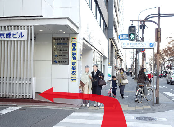 錦小路通の交差点を渡ると、四谷学院京都校に到着です!