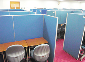 完全個別指導コースを受講している生徒が利用するブースです。1対1または1対2で密度の濃い指導が受けられます。苦手科目だけ、小論文対策だけ、など目的に合った受講ができ、予備校コースとの併用も可能です。