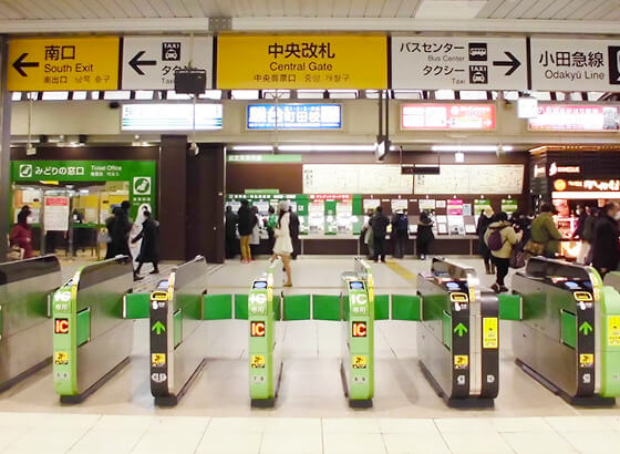 駅構内の花屋さんと改札の間、小田急デパートのファッションウォークを直進します。