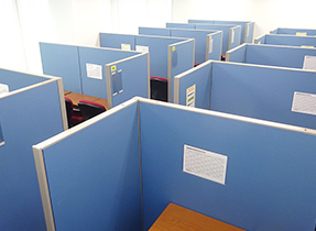 四谷学院の自習室は座席数が圧倒的に多いので、他の予備校のような席取り競争や順番待ちが不要です。ブースタイプの自習室のほかにも、自習用に一部教室開放もしており、椅子はすべてクッションチェア!いつでも快適な環境で勉強ができます。 -
