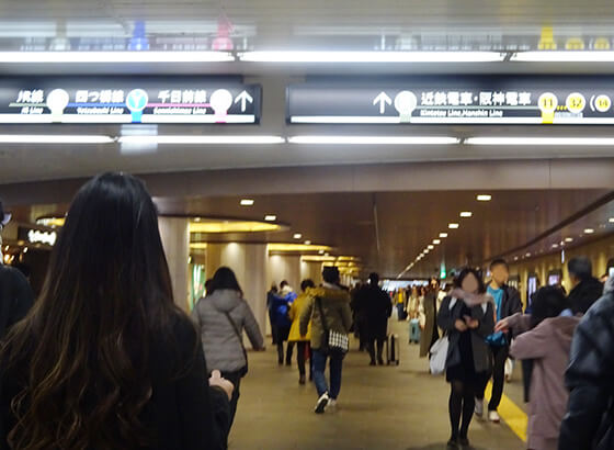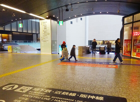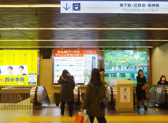 なんば校のある難波は、大阪の中心エリアのひとつであり、JR・地下鉄・近鉄・南海の各駅があり、通学に便利な場所にあります。各駅をつなげている「なんばウォーク」には、飲食店、コンビニ、本屋などがあり、食事やちょっとした買い物にも便利です。