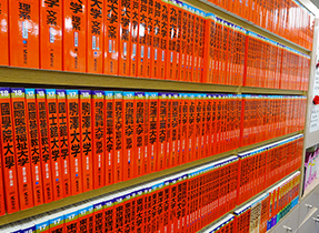 本館1Fには主要大学の赤本をご用意。館内での貸出や閲覧ができるようになっておりますので、志望校対策に大活躍です!