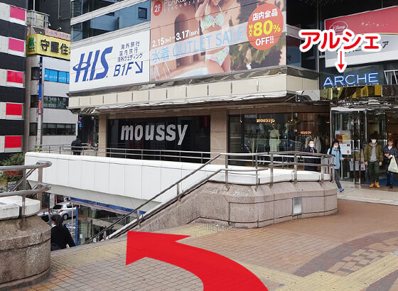 アルシェ手前の階段を下ります。