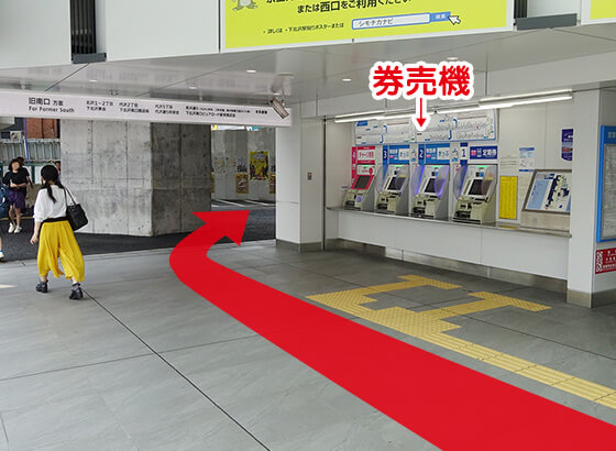 小田急線東口改札・券売機の前を通り右へ曲がります。