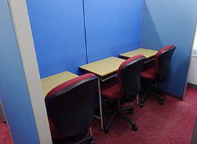 個別相談会のほか、合格までの戦略を一緒に考えていく必修面談、進路・勉強方法の相談などがいつでもできる専用の個別面談室を3室ご用意しています。他の人には聞かれたくないようなお悩みも、周りを気にせず、何でも相談できる空間です。