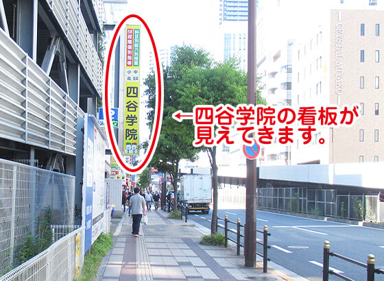 四谷学院の黄色い看板が見えます。