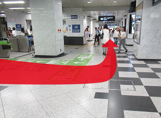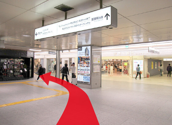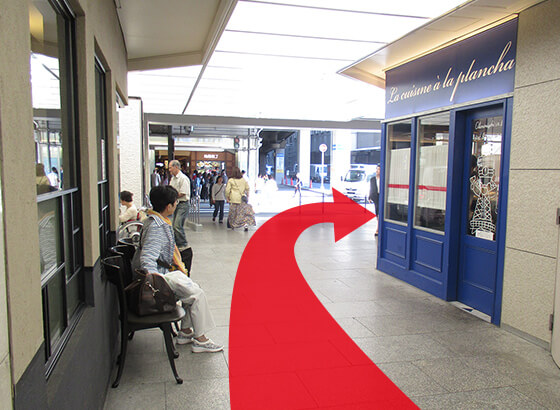 改札を出て左に進んでください。
