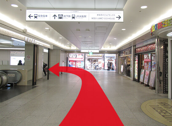 エスカレータ奥を左に曲がります。