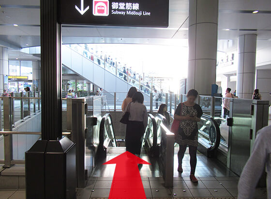 御堂筋線へ向かうエスカレータがあります。