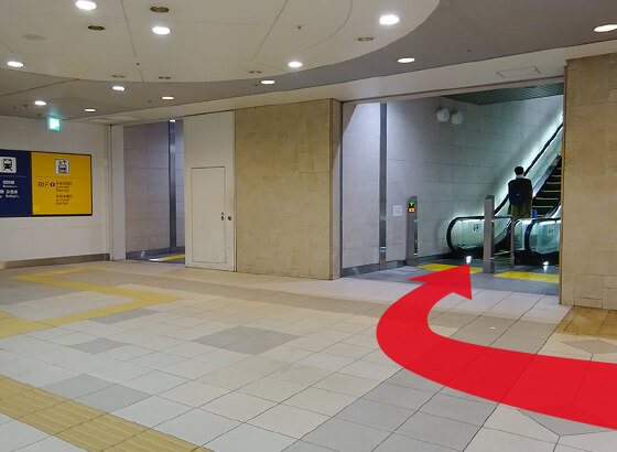 改札を出てすぐ左に曲がります。みなみ西口の表示を目印にしてください。