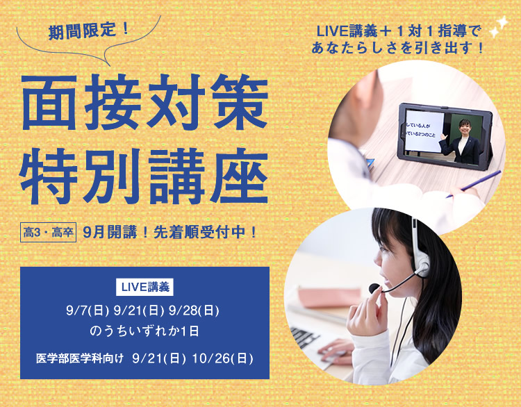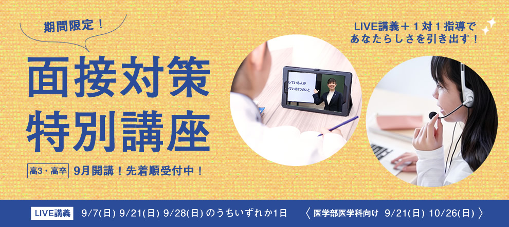 ※面接対策特別講座には含まれません。ご希望の方は別途お申し込みください。