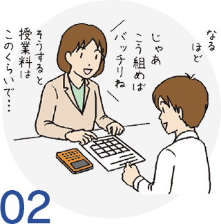 システム紹介はもちろん、受講プランの作成や教材閲覧、校舎見学などを行っています。