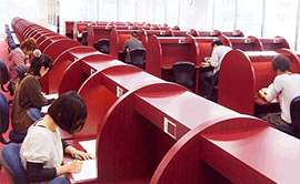 講習の合間には、快適な自習室で勉強に集中。管理も徹底しており、席取り競争をする必要もないので、快適に使えます。