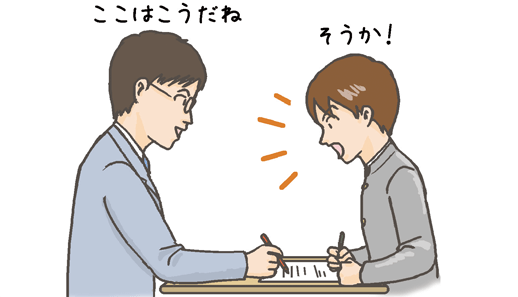 講師がマンツーマンで指導するので、あなたの弱点を見逃しません。どんなに簡単な質問も気軽にでき、説明も納得いくまで受けることができます。自分ではできない記述対策や二次対策も丁寧に添削指導してもらえる贅沢なシステムです。