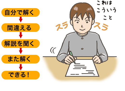 自分で解く→間違える→解説を聞く→また解く→できる!