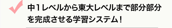 55段階は受験に必要な知識やテクニックを、段階を追って無駄なく学びやすい順序で並べ替えたものです。部分部分を完成させていくことによって、全体を完成させていく確実で合理的な学習プログラムです。しかも中1レベルからスタートし、最後は東大レベルまで到達。級が上がるにつれて、同じ内容を何回も難易度を変えて出題されるようになっているので、本質をしっかり理解させて学力を上げていきます。