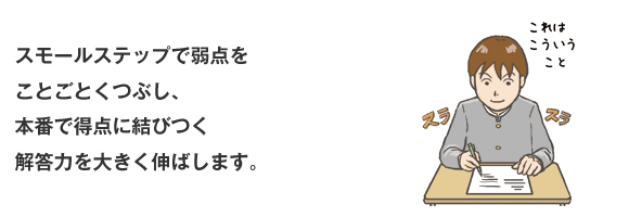 ホップ・ステップ・ジャンプで効率良く基礎を固め、短期間で最高レベルに到達させる勉強システムです。