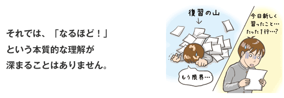 理解の穴、不完全な考え方、不適切な表現など、プロの55段階講師がその場で個別指導します。自分の理解度に合わせて進めることができるから、得意科目はどんどん先に、苦手科目はじっくり進めて、確実な学力をつけていきます。また、間違えた問題だけを集めた自分専用のフォローアップテストで学力の穴を効率よく克服できます。