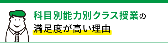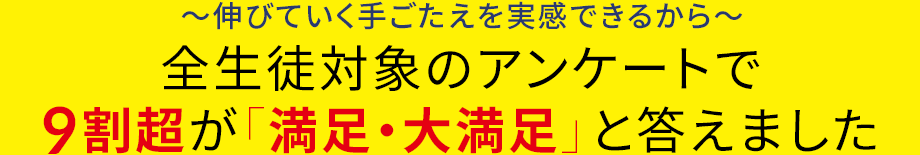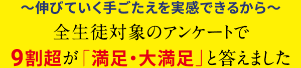 - アンケートで満足・大満足の理由1位は、「授業がわかりやすい」こと。説明がわかりやすい、板書がまとまっている、やる気がでる、の三拍子そろった授業です。なるほどの連続で着実に理解が深まります。
