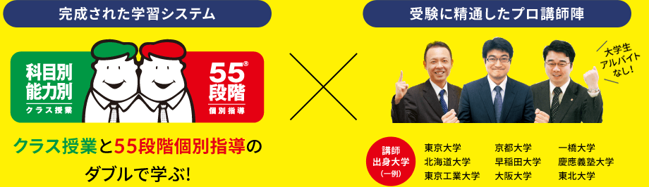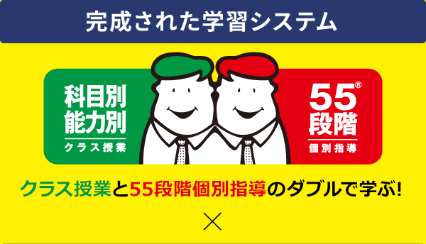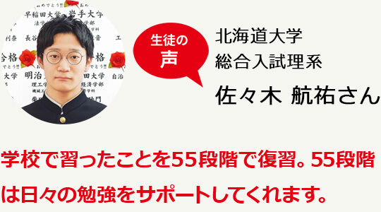 - 55段階の基礎+授業の応用で第一志望に合格!