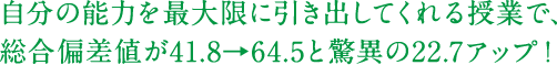 - 全力サポートのおかげで総合偏差値約20UP!