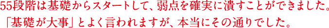 - 55段階で基礎から着実に力をつけ第一志望に合格!