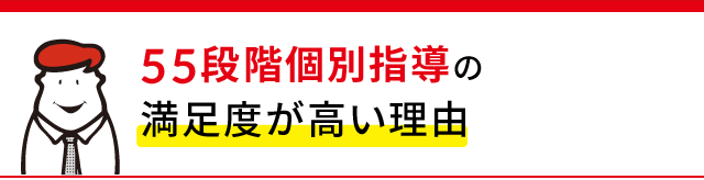 - 55段階はアウトプットをたくさんできて、先生から個別解説でわかるまで何度でも教えてもらえます。さらに復習もしやすいので、しっかりと基礎を定着させて応用問題にも対応できるようになりました。