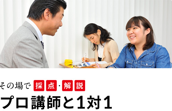 - 正答・誤答がすぐわかり、考えたプロセスが頭に残っているうちに納得いくまでマンツーマンで解説してもらえるから、最大効率で解答力が身につきます。