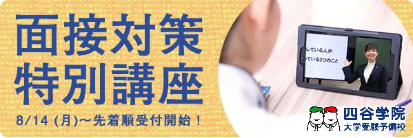 四谷学院の面接対策講座は、あなたの合格可能性を最大限引き上げていきます。 詳しくはこちら